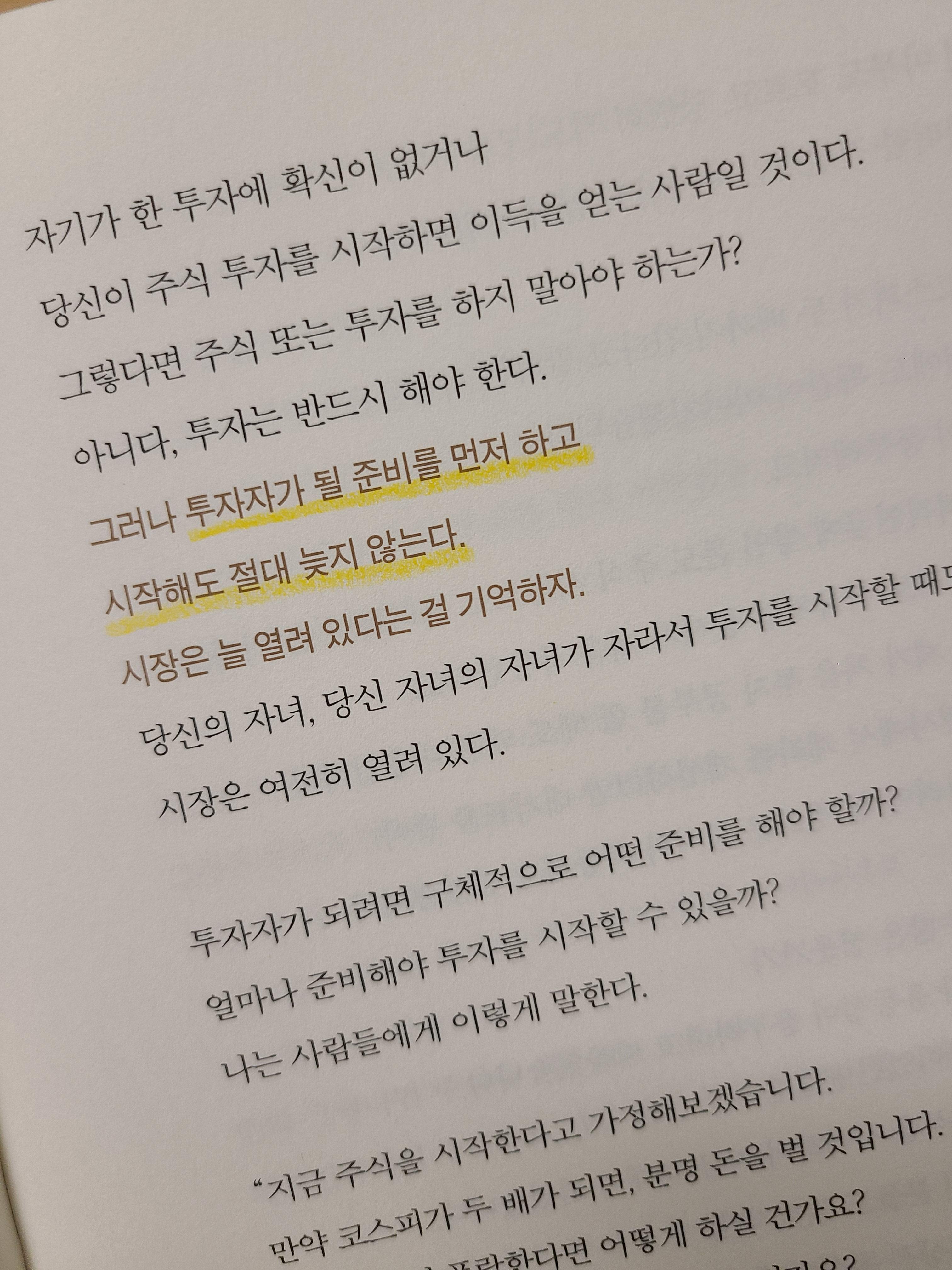 투자자가 될 준비를 하고 시작하는 것! 그래도 늦지 않다고 강조합니다.