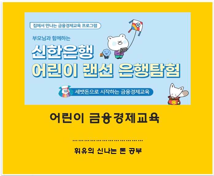 이번 기회에 신한은행 어린이 랜선 은행 탐험을 통해 금융경제공부를 할 수 있도록 해주는 것은 어떨까요?
