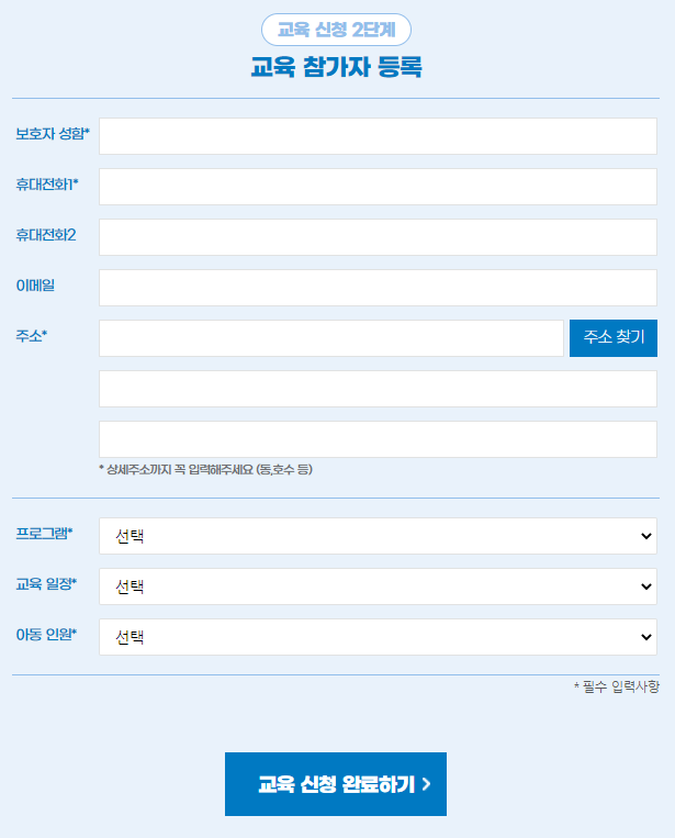 그리고 교육 참가자 등록을 해 주시면 됩니다.
