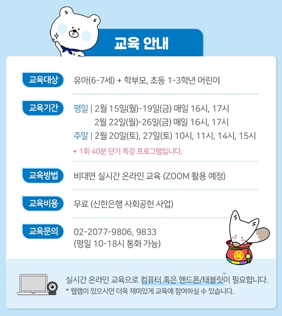신한은행 어린이 랜선 은행탐험 무료 교육은 하기 사이트에서 신청이 가능하십니다!